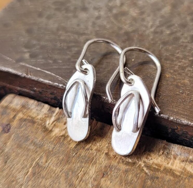 Silver flip flop earrings