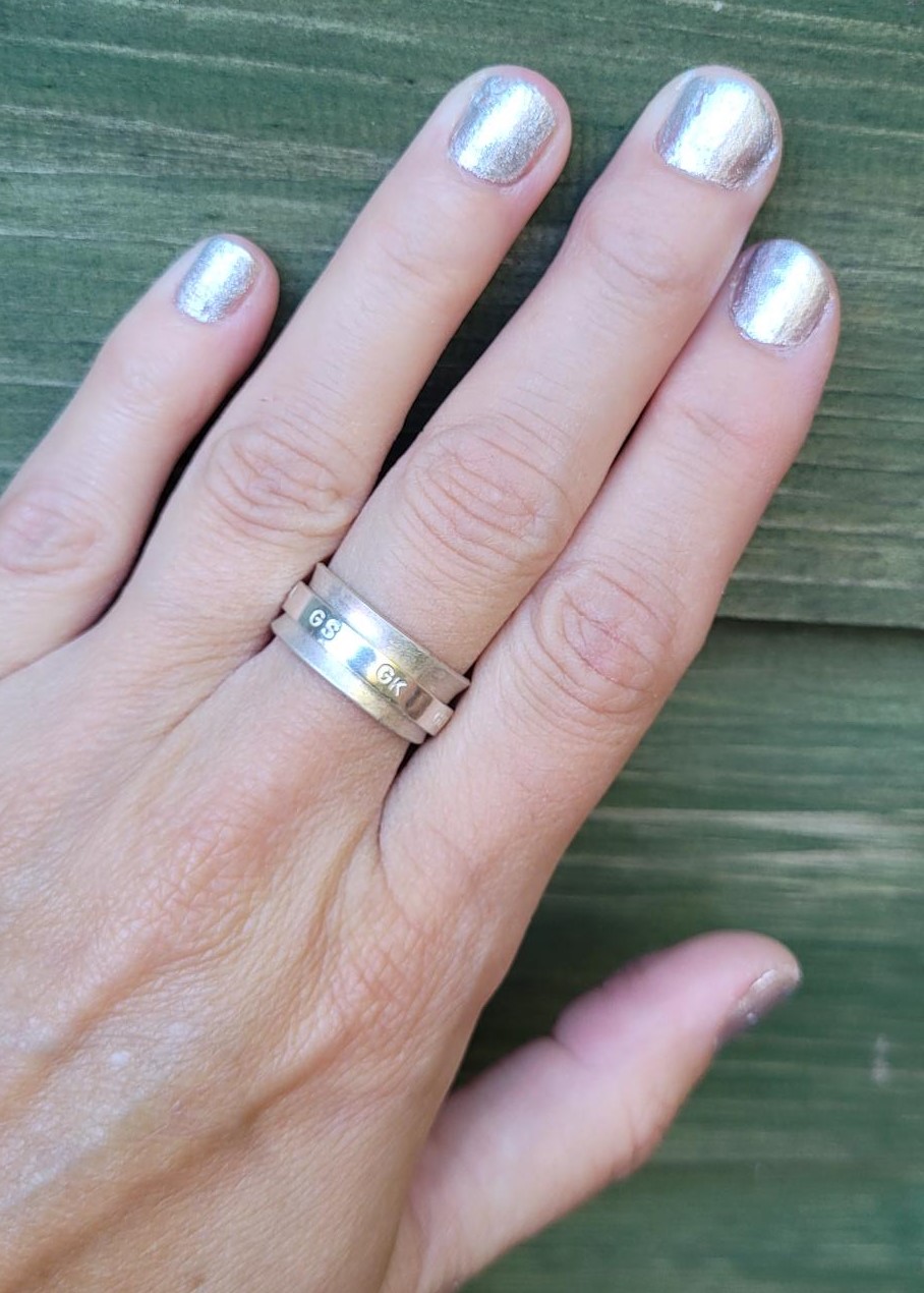 Sterling silver netball themed fidget spinner ring.