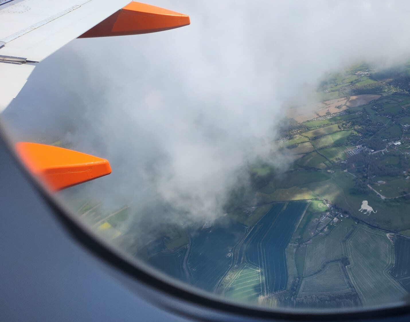 The Whipsnade Zoo chalk lion from an EasyJet flight.