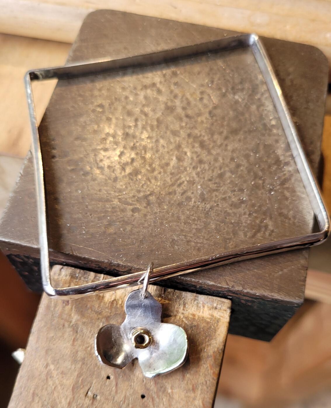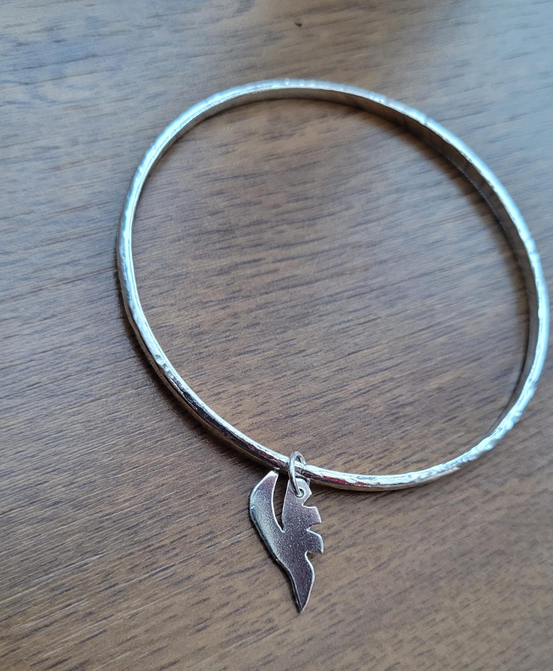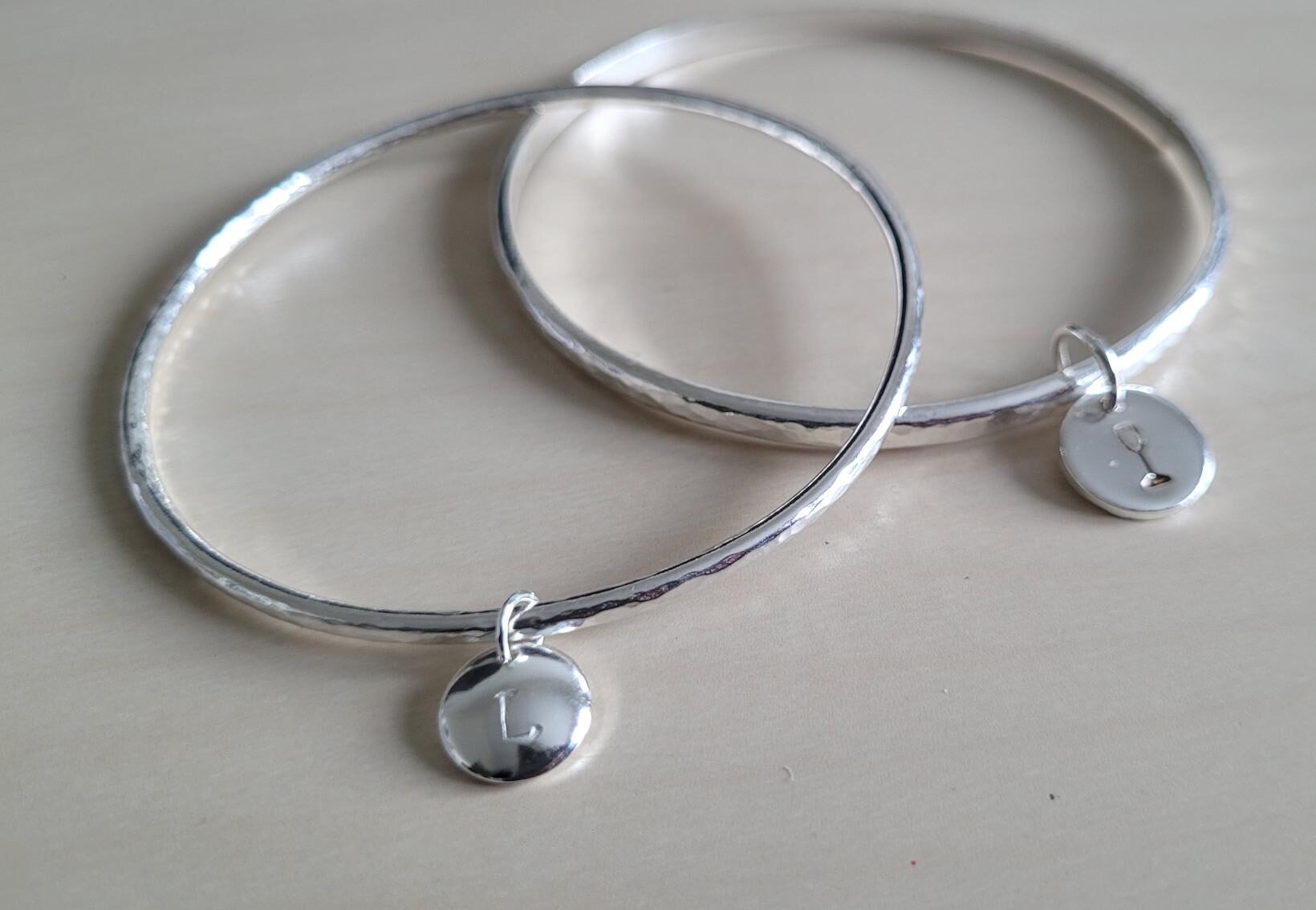 Choose the shape of your silver wire (D-shape, square or round) to create a bangle which can be textured or kept plain. Personalise with a disc charm that can include your loved one’s names or initials or cut out a particular shape that has a meaning for you.