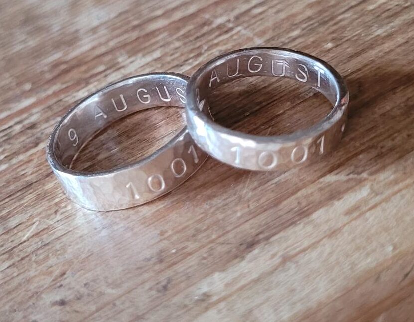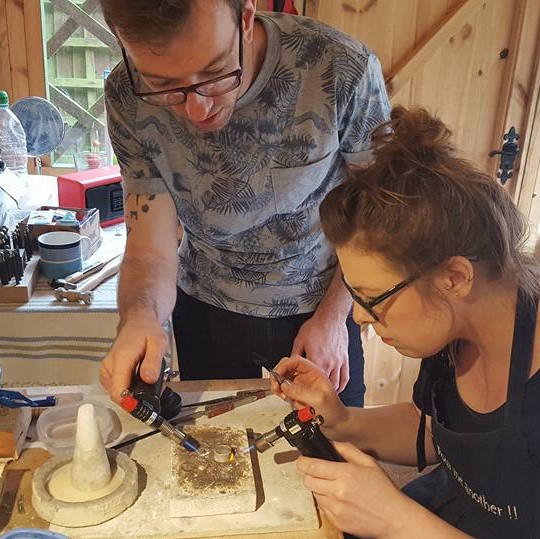 The build-up of any wedding can prove stressful and over-whelming so why not take some time out and spend time together in a relaxing environment making your own wedding rings? You will be able to work in silver and gold. For platinum you would make the rings in silver and then they would be sent to a casting company to make an exact copy. Photos will be taken throughout the workshop to remind you of a wonderful experience.
